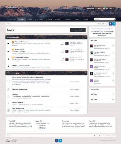 Dimension is a minimalistic theme for IPS.Suite with a unique header effect. Once scrolled, the header collapses into a fixed bar at the top of the page, while also blurring the background image, placing focus on your navigation links.
