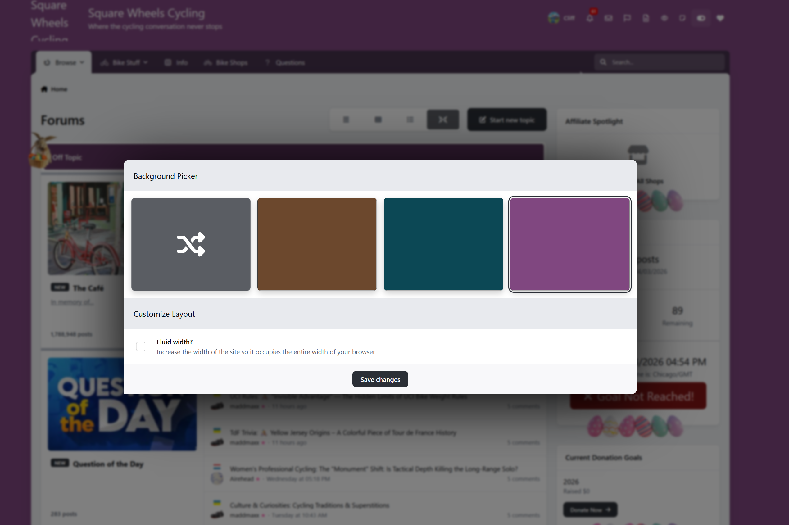 Square Wheels Posted yesterday at 01:37 PM Author Posted yesterday at 01:37 PM 10 hours ago, Ehren said: By wonky, do you mean your images aren’t loading? Is anything else off? It seems to be mostly the background colors. I lost all custom css settings when I updated https://squarewheelscycling.com. This site updated fine https://www.pathlabtalk.com/forum/. The background colors on the cycling site are not the ones you created. 10 hours ago, Ehren said: Have you tried clearing your site cache? Yes, I always do that after an upgrade. --- I also tried downloading Uniform from here and reinstalling, but that didn't help.