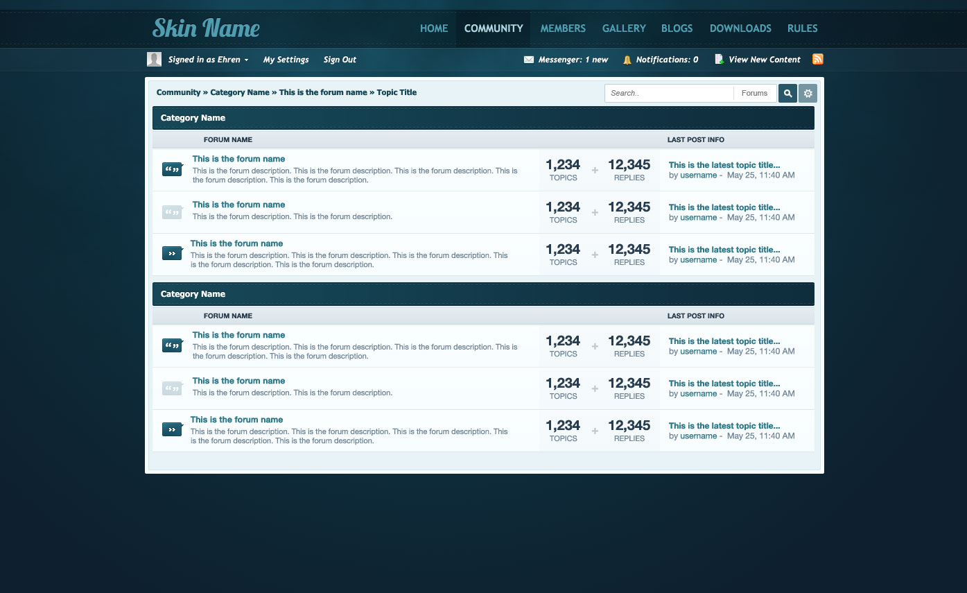 Ehren Posted May 30, 2010 Posted May 30, 2010 I've recently finished with this basic mock-up of a new skin which will be coded for 3.1.x.. If anyone has suggestions for a good name for the skin which isn't corny or lame, then feel free to let me know. I usually struggle to think of something decent that reflects the design of the skin. If your suggestion gets chosen, I'm happy to give you a free copy of the skin. Any suggestions for improvements to the skin are also welcome Keep in mind it's just a mock-up, so not all features (sidebar, footer, stats, etc) are shown - they'll be included in the coded version.