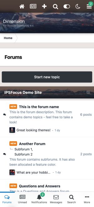Dimension is a minimalistic theme for IPS.Suite with a unique header effect. Once scrolled, the header collapses into a fixed bar at the top of the page, while also blurring the background image, placing focus on your navigation links.