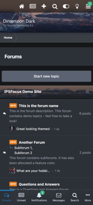 Dimension is a minimalistic theme for IPS.Suite with a unique header effect. Once scrolled, the header collapses into a fixed bar at the top of the page, while also blurring the background image, placing focus on your navigation links.