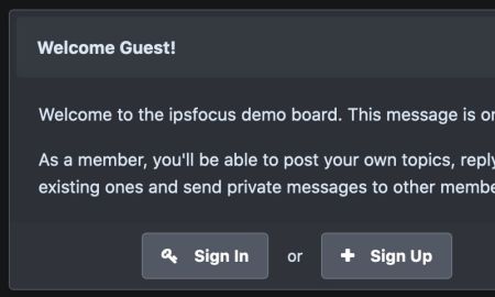 A customizable message can be shown to guests, prompting them to either register or login to your forum. Two designs, "billboard" and "alert" (shown) are available.