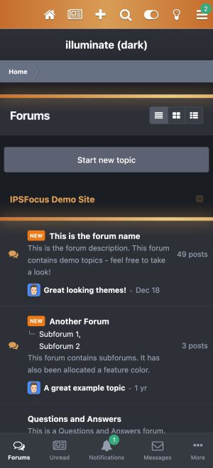 illuminate is a minimal, modern theme for Invision Community. A compact header neatly contains your logo, navigation, user panel and search bar - while your main content is placed on a simple background for easy reading. Categories can be styled with their own unique color scheme which is especially great for sports teams, brands, games or movies.